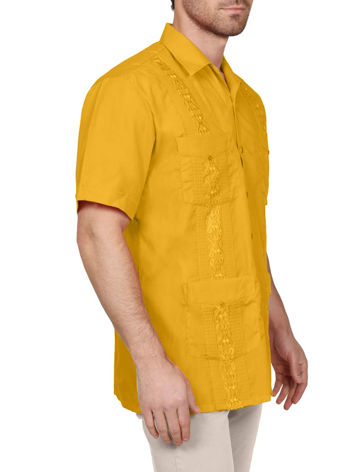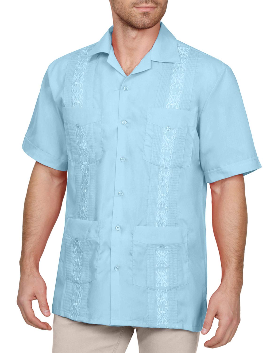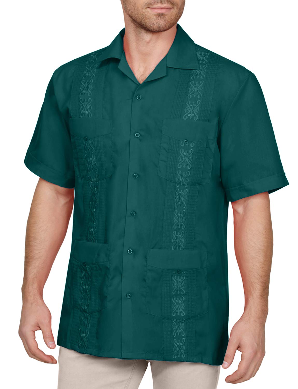 NE PEOPLE Men's Cuban Guayabera Shirt – Short Sleeve Button Down Classic Embroidered 4 Pockets Casual Top NEMT112 Off White 4XL